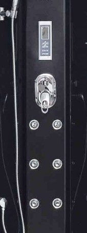 Steuern Sie von diesem Bedienfeld aus alle Luxus-Funktionen Ihres neuen Duschtempels, z.B.: Telefon Radio Lüftung Beleuchtung